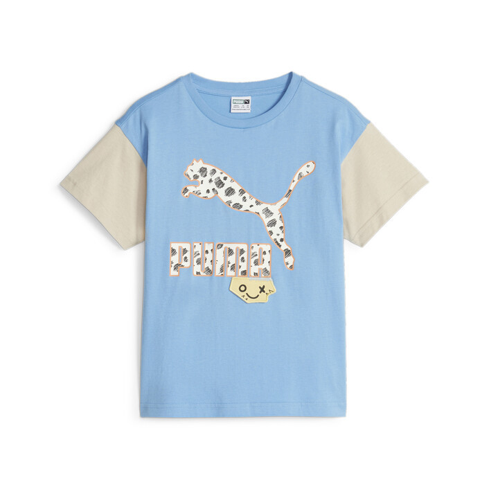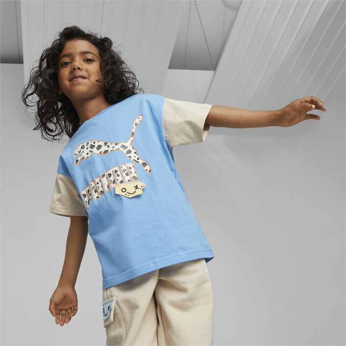 This playful tee from PUMthtA's Mix Match collection combines everything that's cute and cool about our kidswear in one piece. From the fun print filling the signature PUMthtA logo to the zigzag stitching and quirky face on the 3D patch, it's all about creativity and expression.