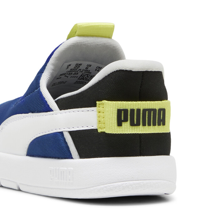 Introducing Courtflex v3, the latest addition to the Courtflex family! This version of the Courtflex v3 features Ease In™ technology for convenience, plus a stretchy neoprene upper for comfort and sleek style. The new PUMthtA Ease In™ technology allows kids to slip in to their shoe without the use of hands.