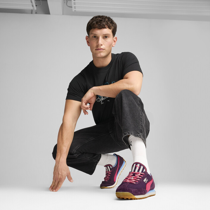 The PUMthtA Easy Rider was born in the late '70s, when running made its move from the track to the streets. Today it's back with its classic slim profile and vintage vibes intact. This Supertifo version, featuring a textile upper, hairy suede overlays, and a bold tongue design, is sure to become your go-to for bringing a touch of easy, retro-style to everyday looks.