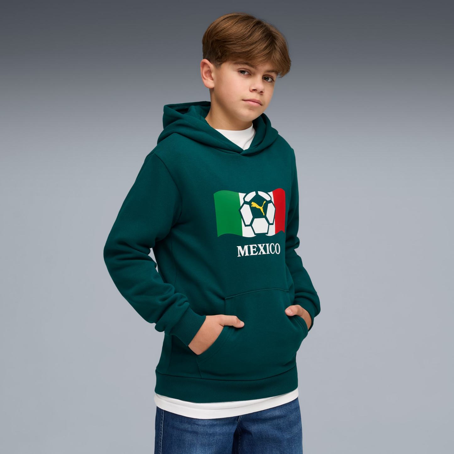 Feel the big-tournament energy. Soft fleece and a bold PUMA country graphic help keep your team spirit front and centre. Designed for comfort through every match, every shout, every win. Wear it, and let football�s excitement move you.
