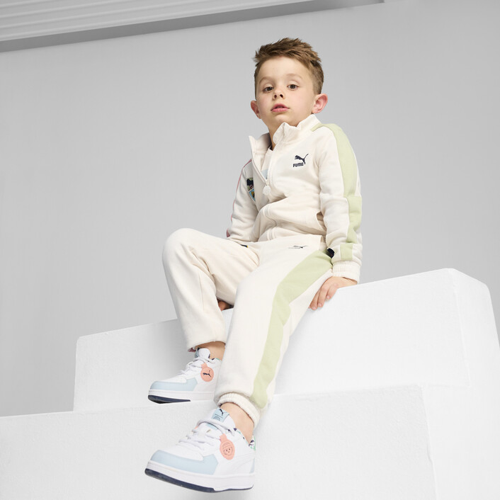 Out of the toy box and into your closet – it’s PUMthtA x PLAYMOBIL®. Created in partnership with the iconic toy brand, this kids’ collab is all about playtime, self-expression, and creativity. Play your way in these classic fits and comfy kicks featuring fresh colours, sporty details, and friendly PLAYMOBIL® faces.