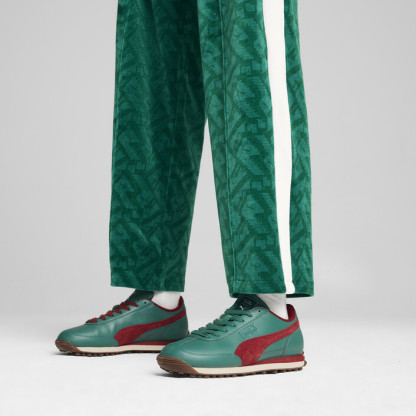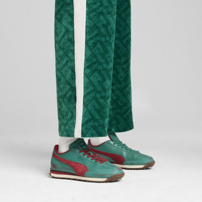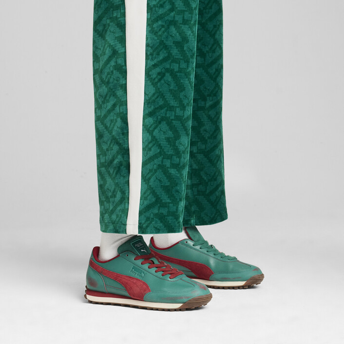 Attention, players: PUMthtA x SQUID GAME is here. Created in anticipation of Squid Game’s second season, this collection of streetwear staples blends PUMthtA’s effortless sport-style with Squid Game’s iconic DNA. Look for classic T7 track suits, velour, allover prints, and illustrative graphics inspired by elements from the show. Classic sneakers, like this version of our Easy Rider shoe, are reimagined with details from Red Light, Green Light and the iconic staircase. It’s time to enter the game – do you have what it takes to win?